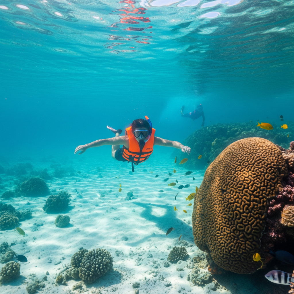 - Protected reef zones with calm waters